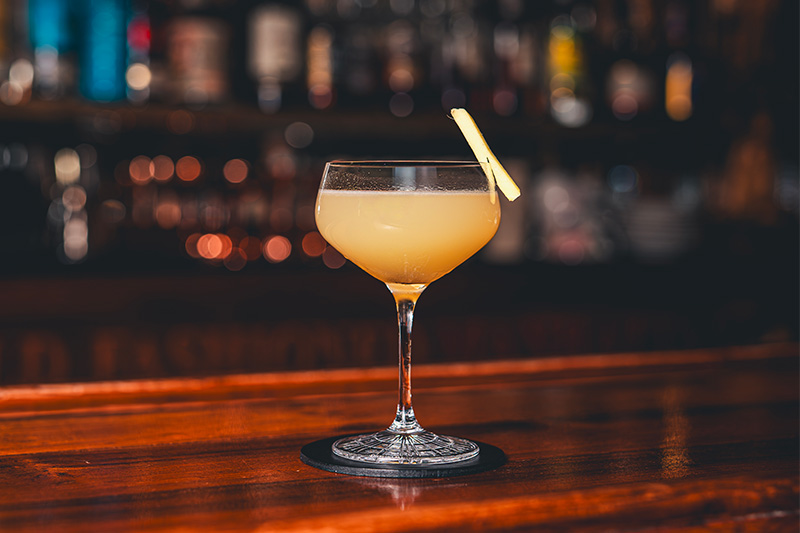 Další koktejl nese zdánlivě prostý název – The Bridge. V Praze ale slovo „most“ okamžitě evokuje Karlův most, a ten se v příběhu skutečně objevuje. Do drinku tak pronikla symbolika stavebního základu – a proto i bílek, který se po staletí používal při stavbě mostních pilířů, našel své místo i zde. Nápoj je moderní variací na Whiskey Sour, postavený na kombinaci české whiskey Goldcock BA, aromatického likéru MUYU Vetiver Gris, limety, simple sirupu a bílku. Vzniká tak jemně zakalený, krémový koktejl s citrusovým nábojem a elegantním zakončením – most mezi minulostí a současností. Také vás láká představa zažít cestu do minulosti? Potom navštivte náš Black Angel’s bar a nechte se přenést přes most chutí The Bridge, který vás tam zavede už v jediném doušku!