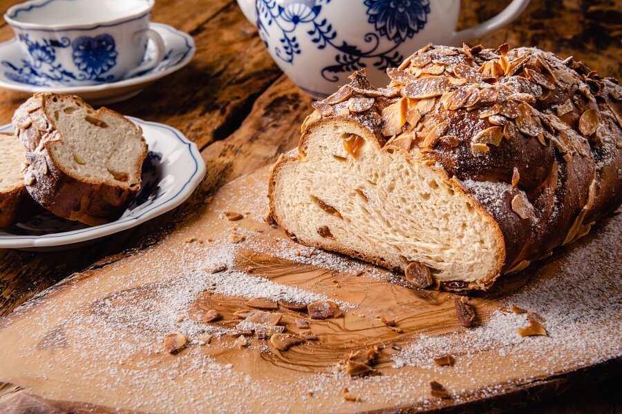 Our well-known fair butter Christmas with raisins inside and flaked almonds on top. In production, we use quality raw materials, including eggs from poultry farms.