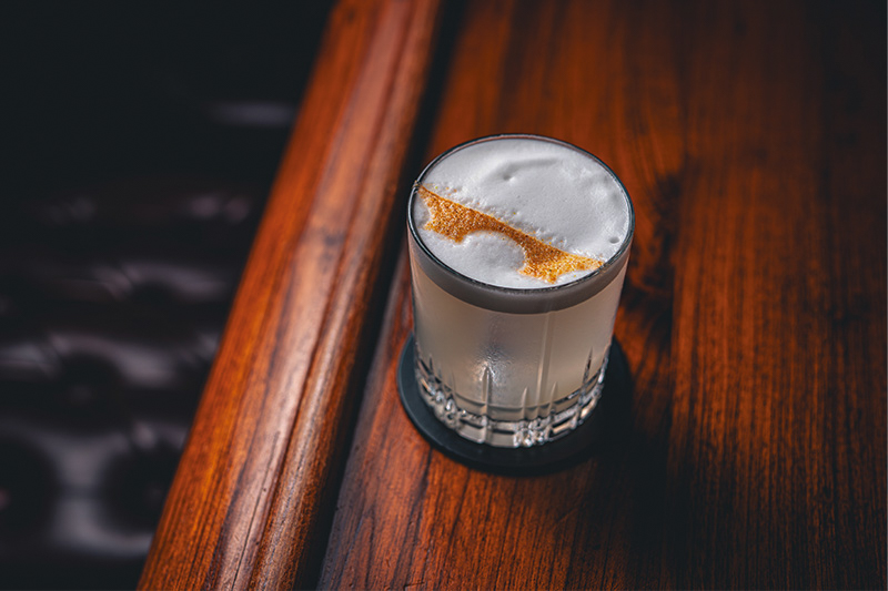 The Bridge je přesně tím spojovacím článkem mezi moderní mixologií a klasickou elegancí. MUYU Vetiver Gris přináší zemitost a jemně kouřový charakter, Goldcock Barrel Aged dodává hloubku a časem prověřený charakter. Limeta spolu s bílkem a jednoduchým sirupem vytváří hebkou texturu a perfektní rovnováhu mezi svěžestí a krémovostí.